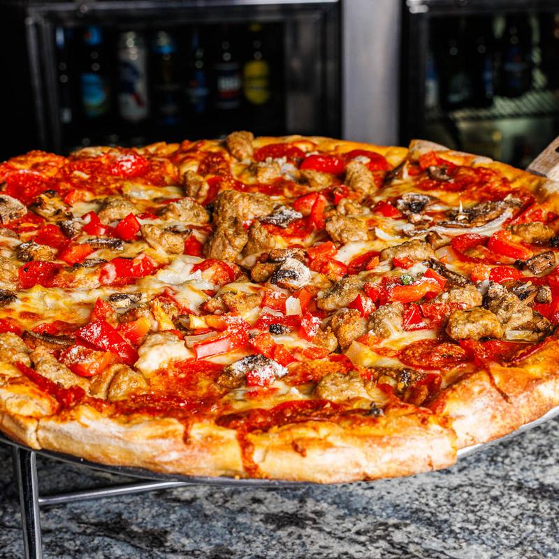 Small $17.00 | Large $26.00 • Traditional red, mozzarella, pepperoni, sausage, bacon & meatballs